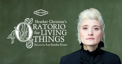 In this sweeping world premiere, composer Heather Christian infuses the classical oratorio with blues, gospel, jazz and soul. Oratorio for Living Things unfolds the complex layers of what it means to be alive and our relationship to time. Staged by Obie Award-winning director Lee Sunday Evans and featuring eighteen virtuosic singers and instrumentalists, the experience surrounds and uplifts, celebrating our curiosity, our wonder, and what we’re capable of becoming when in communion with each other. The resulting music-theater event heralds Christian as an undeniable artistic force.